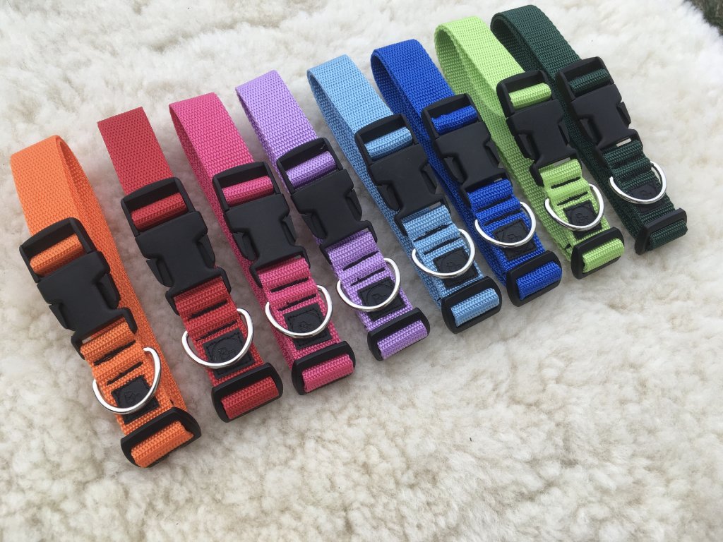 Popruhový obojek šíře 2,5cm s plastovou přezkou.