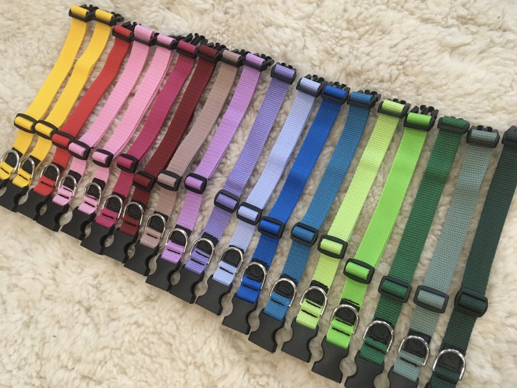 Popruhový obojek šíře 2cm s plastovou přezkou.